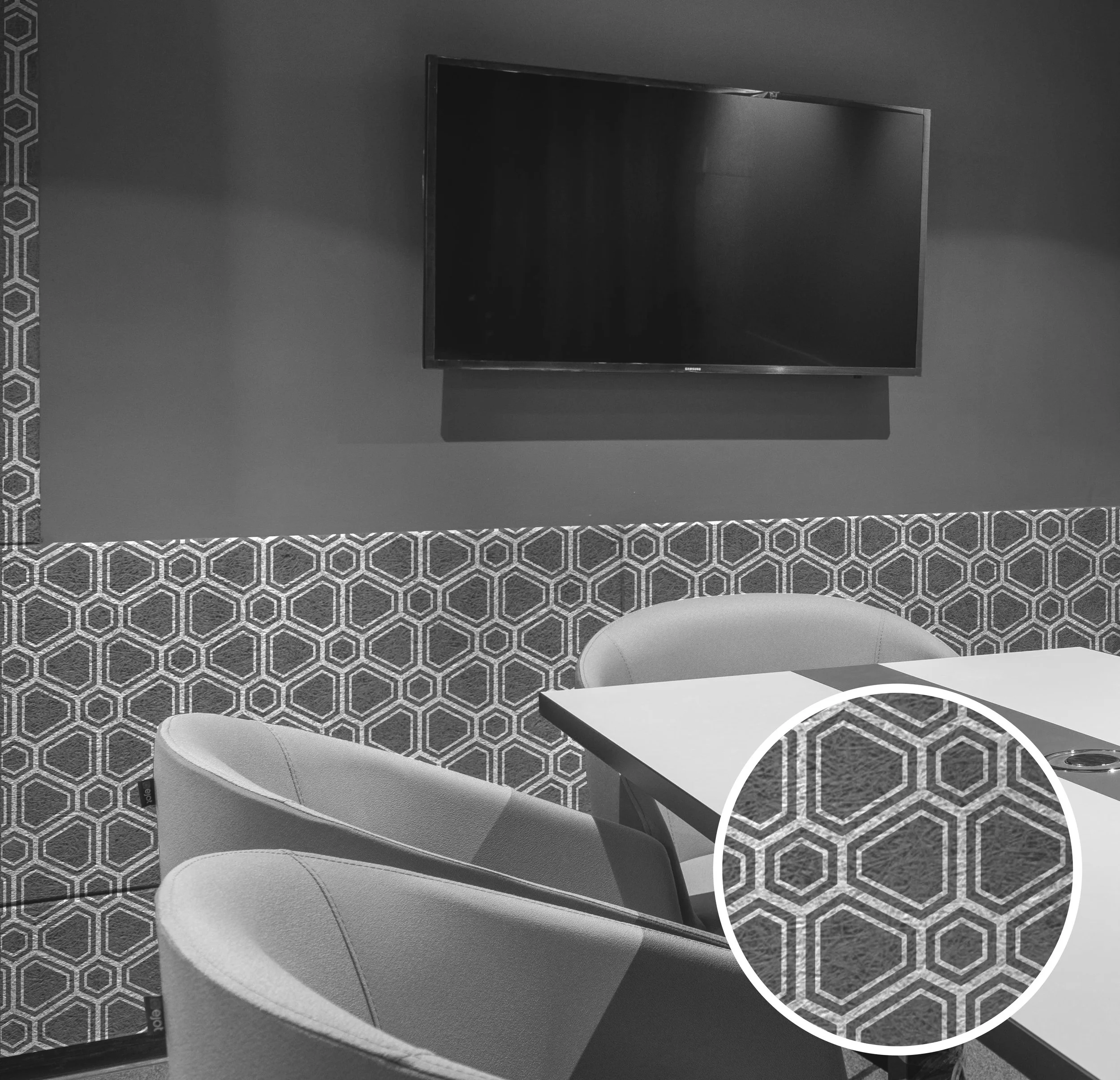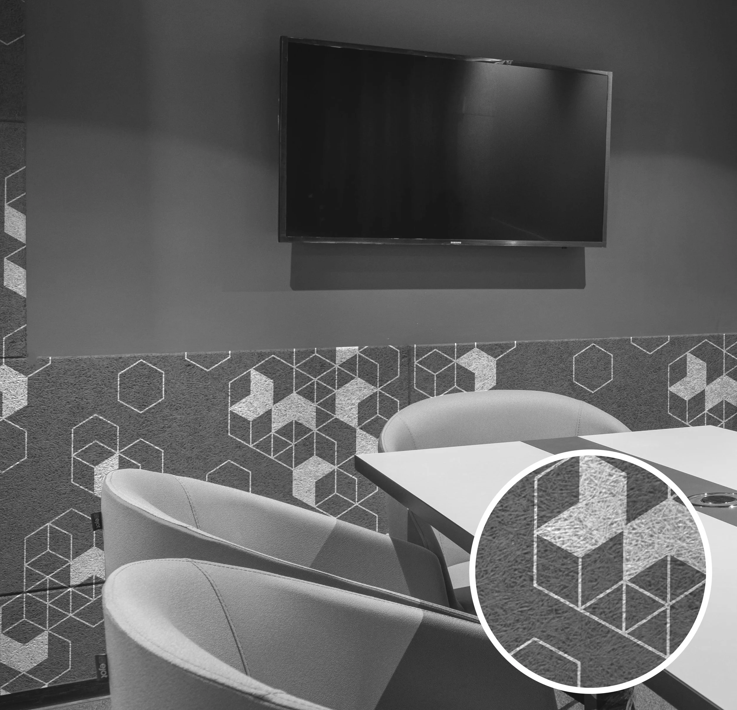 Explore Tint Design's Geometric Collection— A design range that is composed of geometric shaped patterns for window film, wallpaper, acoustic panels, rigid media, and more. Unleash the power of precise geometry and modern aesthetics, seamlessly blending bold patterns and style to transform surfaces into captivating visual experiences.